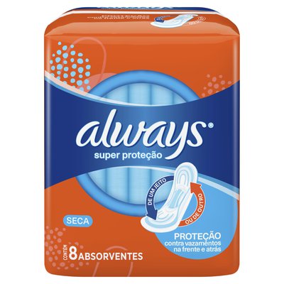 Absorvente Always Super Proteção Seca 8 Unidades sem Abas