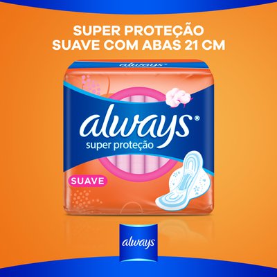 Sinta-se limpa e confortável com o novo “Always Super Proteção” com formato anatômico, desenhado para a mulher brasileira, que se adapta ao seu corpo e calcinha, mantendo a umidade longe da sua pele. Para que serve Absorvente Always Super Proteção Suave com Abas tem formato Anatômico que se adapta ao seu corpo, cobertura antiumidade, barreiras antivazamentos e centro anatômico de absorção. Formato adaptável que absorve onde o seu corpo mais precisa. Modo de uso Retire seu absorvente do pacote, remova o papel detrás do absorvente e coloque o absorvente em sua roupa íntima pressionando firmemente, suba sua roupa íntima. |