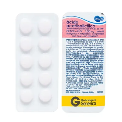 Ácido Acetilsalicilico 100mg Infantil 10 Comprimidos EMS