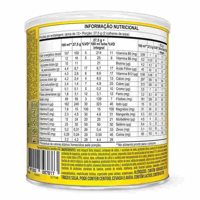 ALÉRGICOS: CONTÉM DERIVADOS DE LEITE, TRIGO E SOJA. PODE CONTER CENTEIO, CEVADA E AVEIA. CONTÉM LACTOSE.