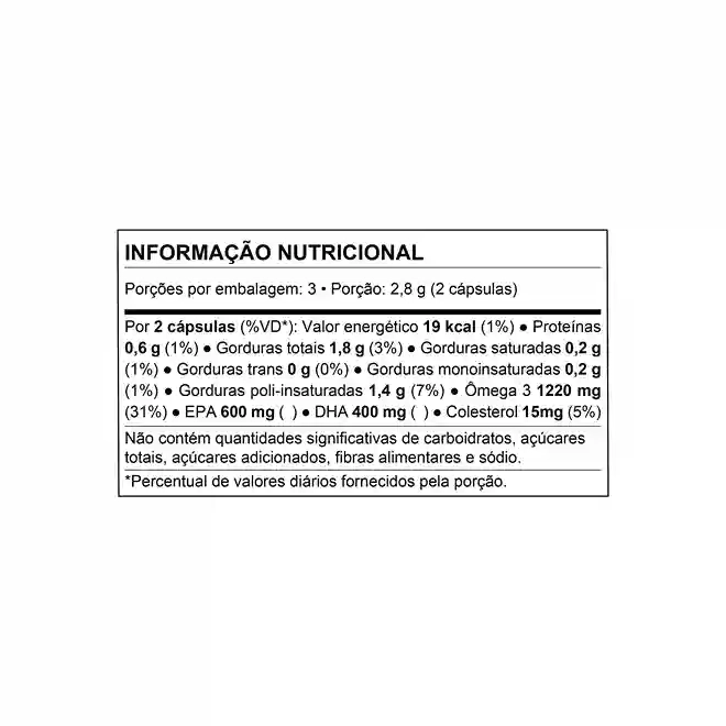 Óleo de peixe concentrado, gelatina, água purificada, umectante glicerina e antioxidante mistura concentrada de tocoferóis. |