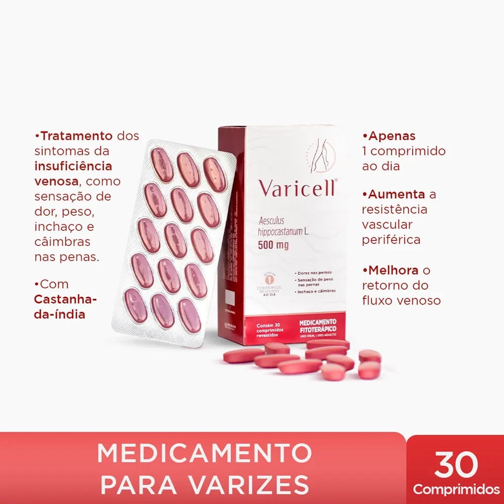 Varicell 500mg 30 Comprimidos - Remédio para Varizes e Dores nas Pernas