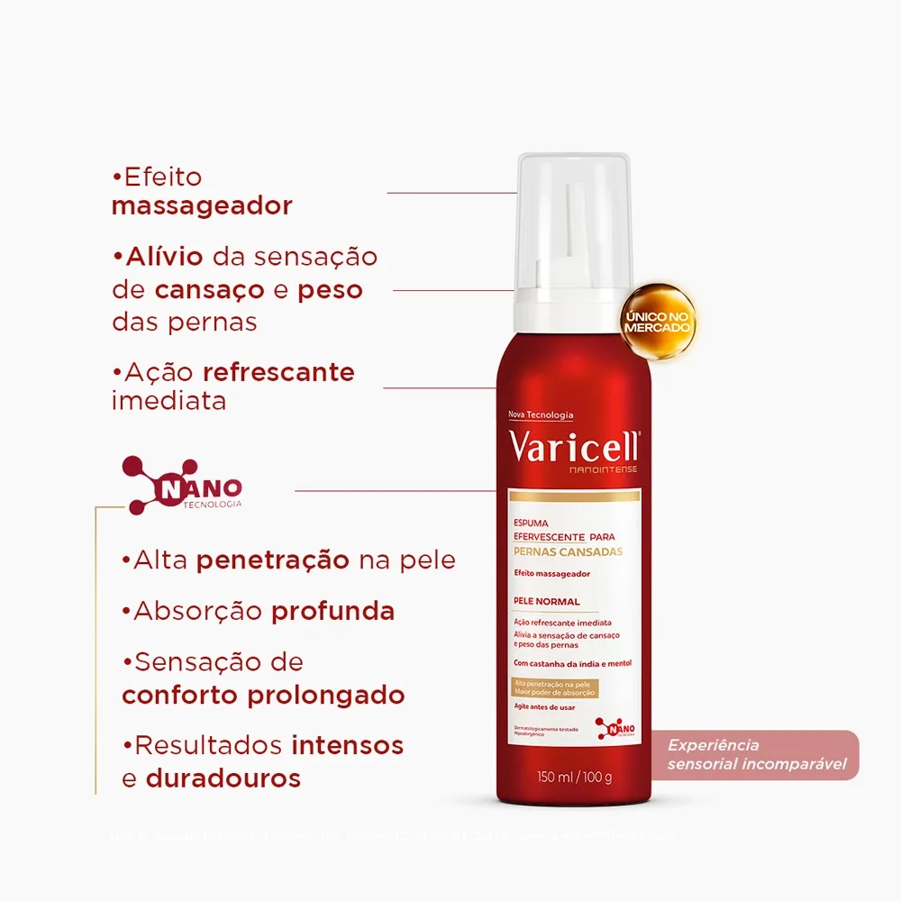 embalagem do produto. Qual melhor creme para varizes e circulação nas pernas? Varicell® Nanointense Espuma Efervescente é uma